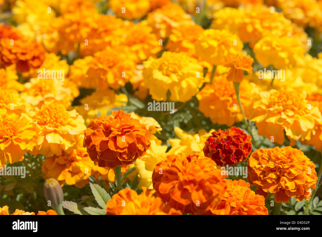 Lots Of Marigold Flowers A Variation And Theme Of Orange Gold And Yellow Petals Stock Photo Alamy